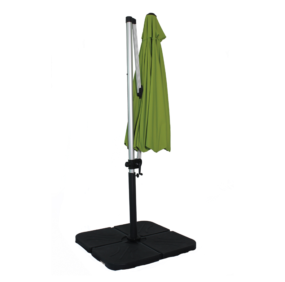 Ajuste de altura y pedal para giro de 360 grados que beneficia ante el movimiento del sol. Manivela para abrir y cerrar toldo