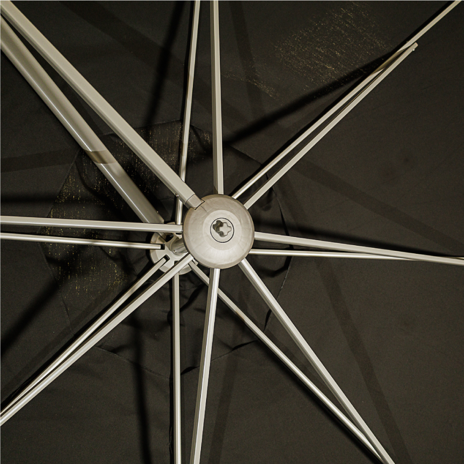 Apertura Manual con ajuste de altura y pedal para giro de 360 grados que beneficia ante el movimiento del sol